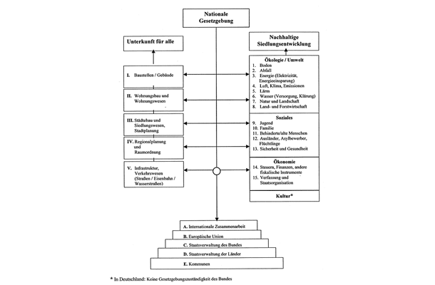 Die Vielfalt der behandelten Gesetzgebungsbereiche wird deutlich, wenn man sich die Weite der Themenfelder der Habitat-Agenda mittels des nachfolgenden Schaubilds verdeutlicht.